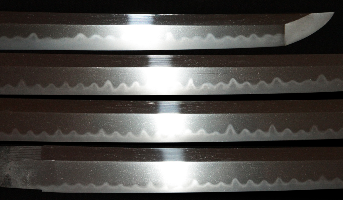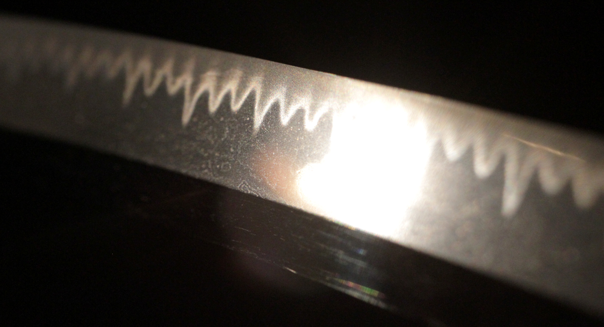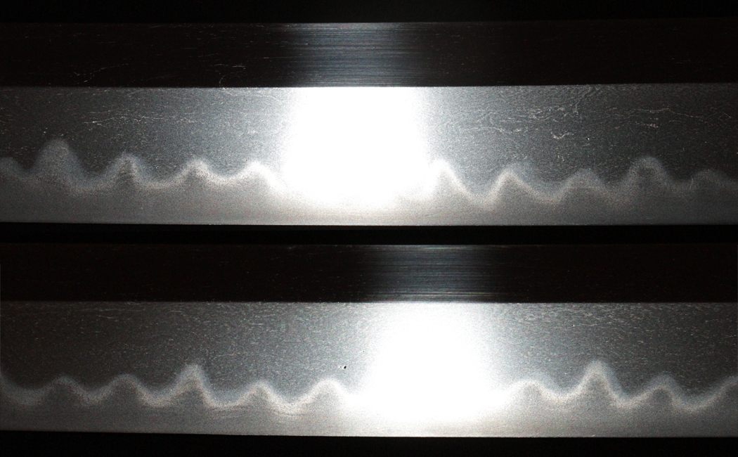| Hamon: | Sabonsugi mixed with gunome |