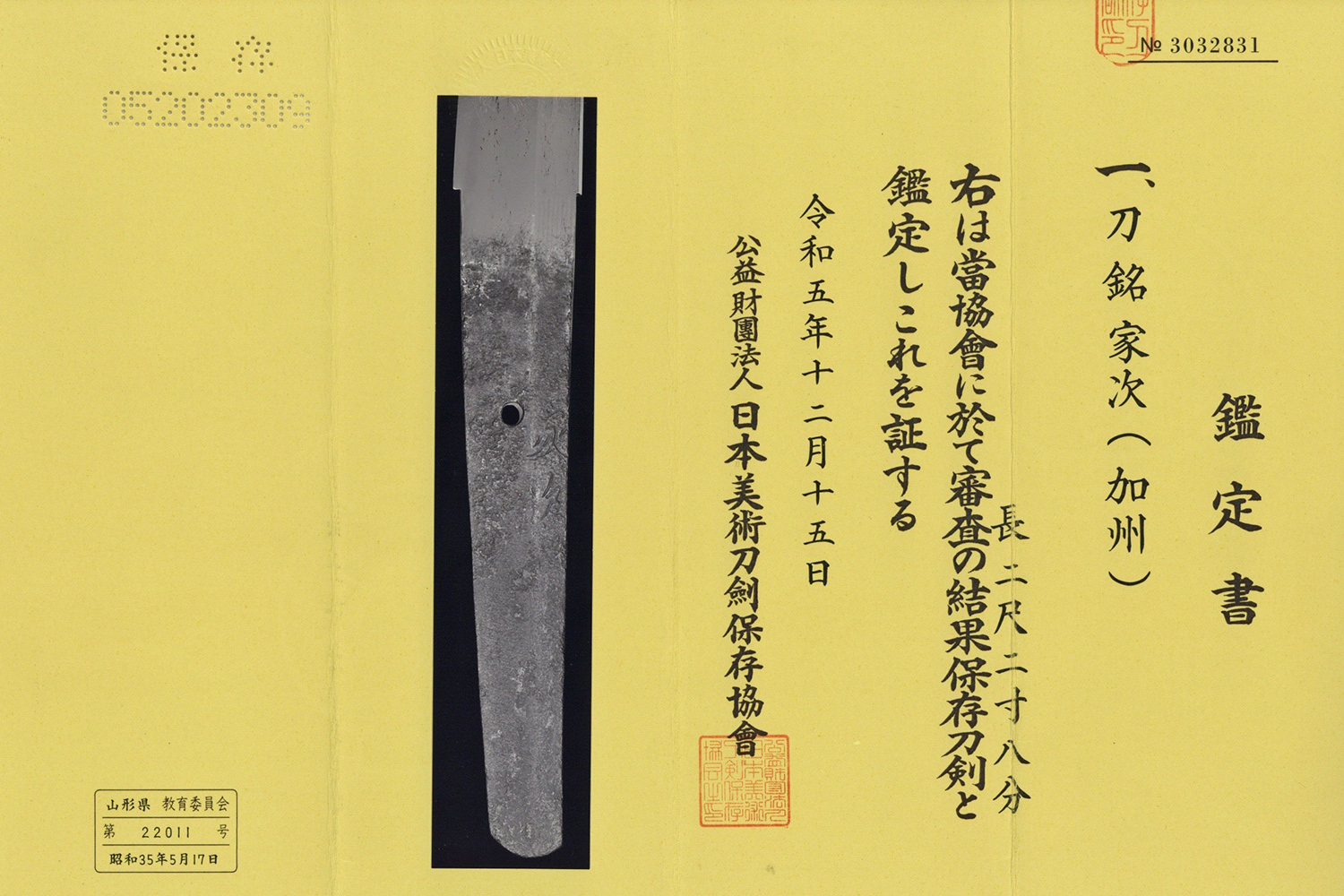 1x NBTHK Hozon (Blade) 2x Tokubetsu Kicho (blade & Koshirae)